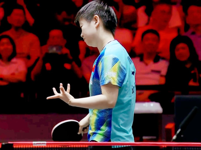 WTT新加坡大满贯女单决赛,王曼昱2-4输给了孙颖莎。在比赛期间出现了一个小插曲,王曼昱的衣服出现了脱线的情况,工作人员用打火机才把线头烧断。这是两人生涯第30次交手,前29次孙颖莎赢了19次,第30次还是孙颖莎赢,王曼昱为何打不过孙颖莎?